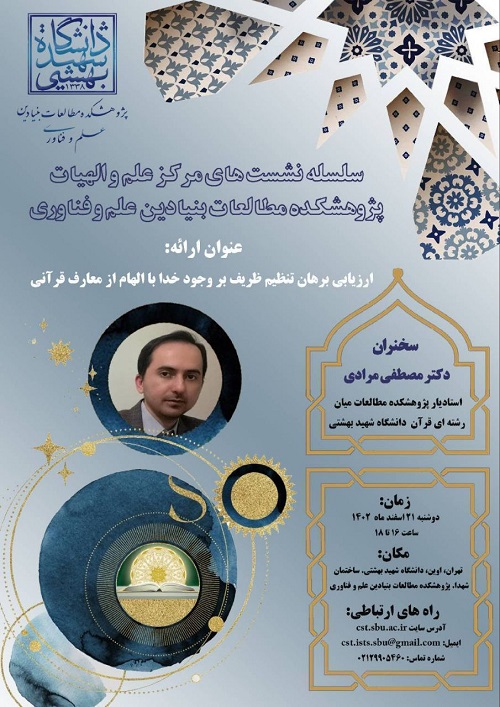 نشست علمی «ارزیابی برهان تنظیم ظریف بر وجود خدا با الهام از معارف قرآنی»، دوشنبه 21 اسفند 1402 برگزار می شود.